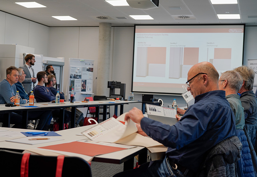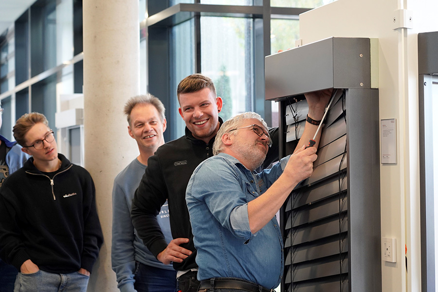 Die Ausübung der Handwerkskunst erfordert besondere Kompetenzen. Deswegen konnten die Teilnehmer neben den informativen Inhalten auch ihre handwerklichen Fähigkeiten erweitern. Die Monteure von Reflexa gaben ihre exklusiven Tipps und Tricks an die Fachhändler weiter. Sie führten die Teilnehmer Schritt für Schritt durch verschiedene Anwendungen, angefangen bei Motortausch, Texbandwechsel bis zur Beseitigung des Schräglaufs bei Raffstoren. Die dabei aufkommenden Fragen konnten direkt umfangreich beantwortet und wertvolle Fertigkeiten vermittelt werden.